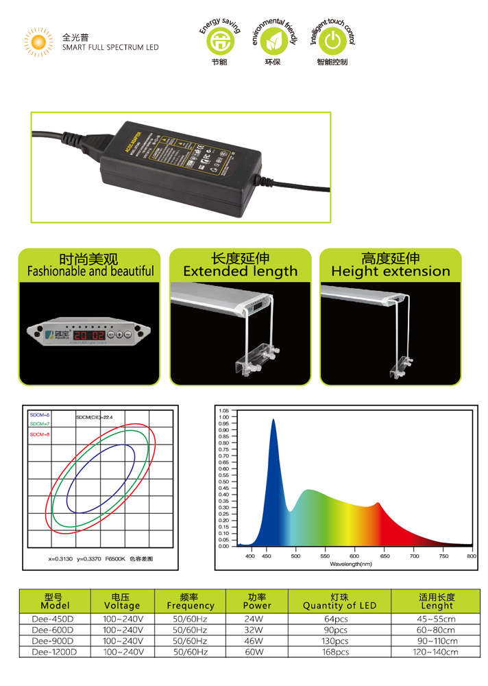 2.进口LED灯珠,高效节能,光通量适合水底生物需求